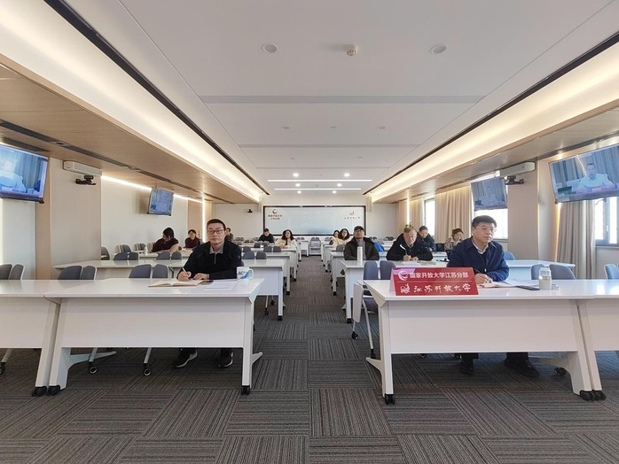 2025年12月26日,国家开放大学召开2025年秋季学期学位论文评审工作部署视频会,国家开放大学党委委员、副校长李松出席活动,教务部部长古小华主持活动。江苏分部学位审核委员会委员、国开分部教学管理中心处领导、教务与学籍办公室相关工作人员、各专业负责人在定淮门校区8楼会议室集中参加线上活动。